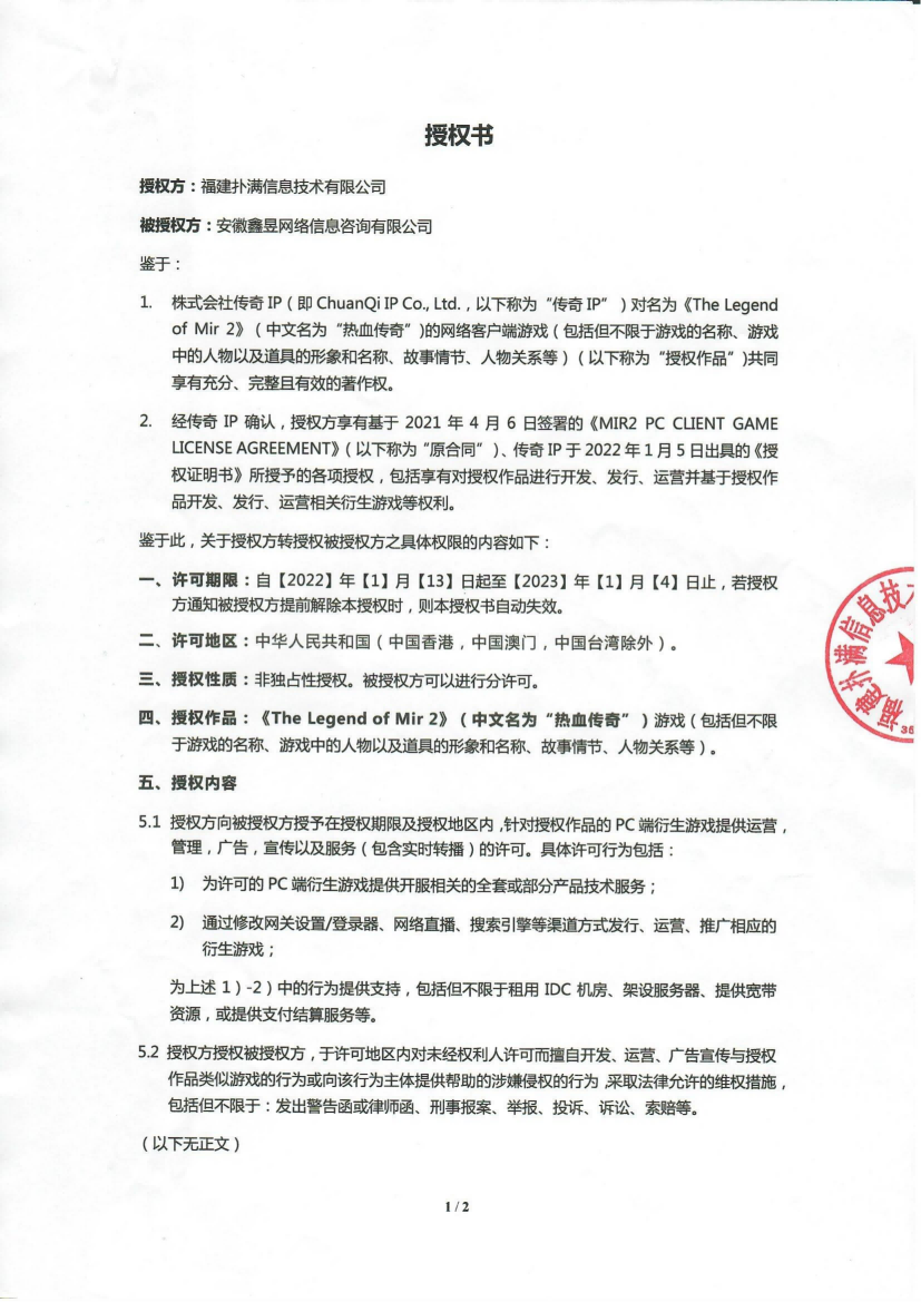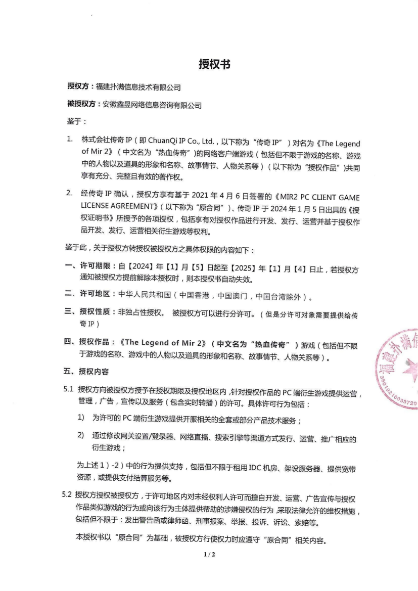 關于對《The Legend of Mir 2》(熱血傳奇) 衍生品游戲直播的嚴正聲明